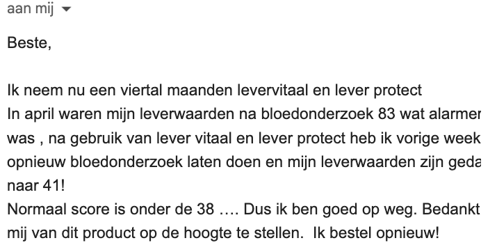 Ik kocht 3 potten Lever Vitaal terwijl ik door social media scrolde. Een impulsaankoop, geef ik toe. In het begin was ik sceptisch. Na een paar weken merkte ik nog niet direct een groot verschil. Maar omdat de reviews zo goed waren, besloot ik door te zetten. En toen… begon ik écht iets te merken. Mijn energie werd beter, ik voelde me lichter, en mijn opgeblazen gevoel verminderde. Nog eens twee weken later… en mijn vermoeidheid? Bijna verdwenen! Alsof ik een frisse start had gekregen.