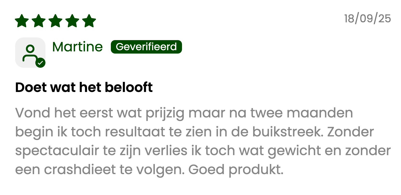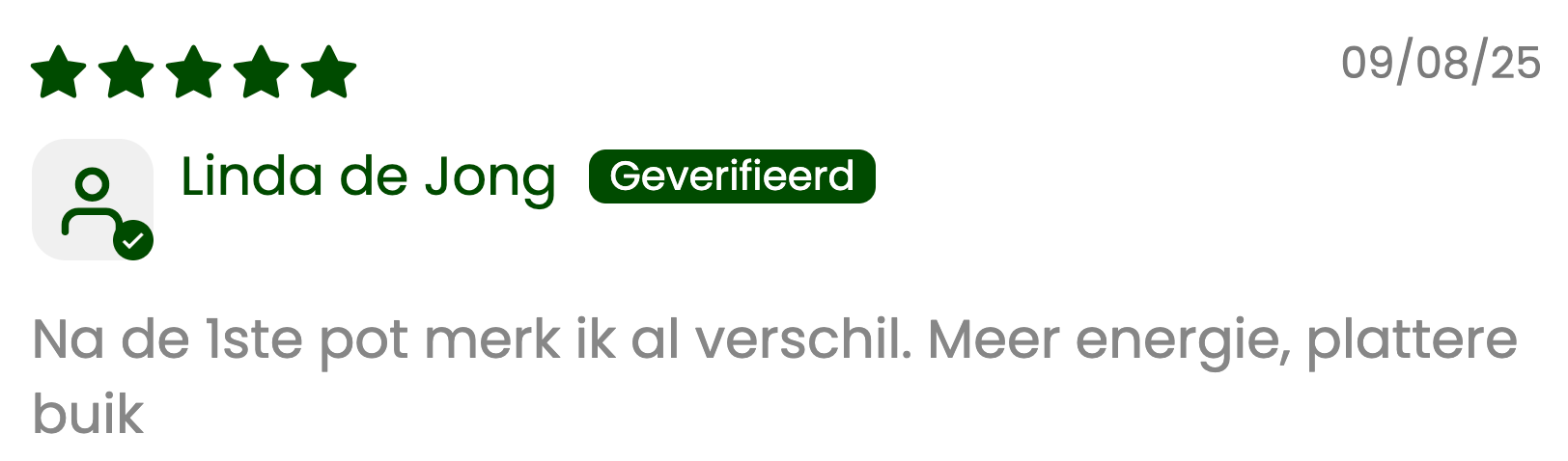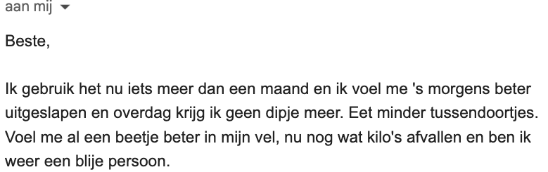 Ik gebruik dit nu ongeveer een maand. Ik voel me aanzienlijk beter. Snelle reactie op mijn e-mail. - Lotte van Dam